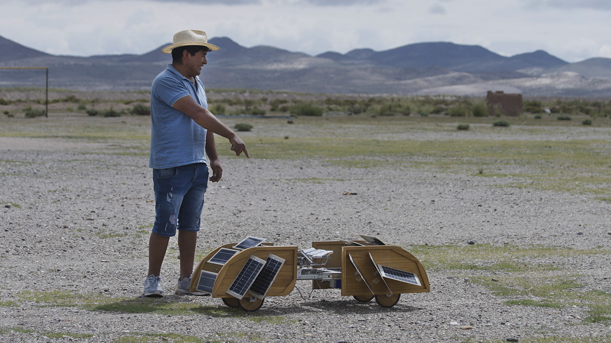 A solar-powered robotic caterpillar crawls across the arid Altiplano, miraculously harvesting precious droplets of moisture from a barren landscape – seemingly devoid of life.